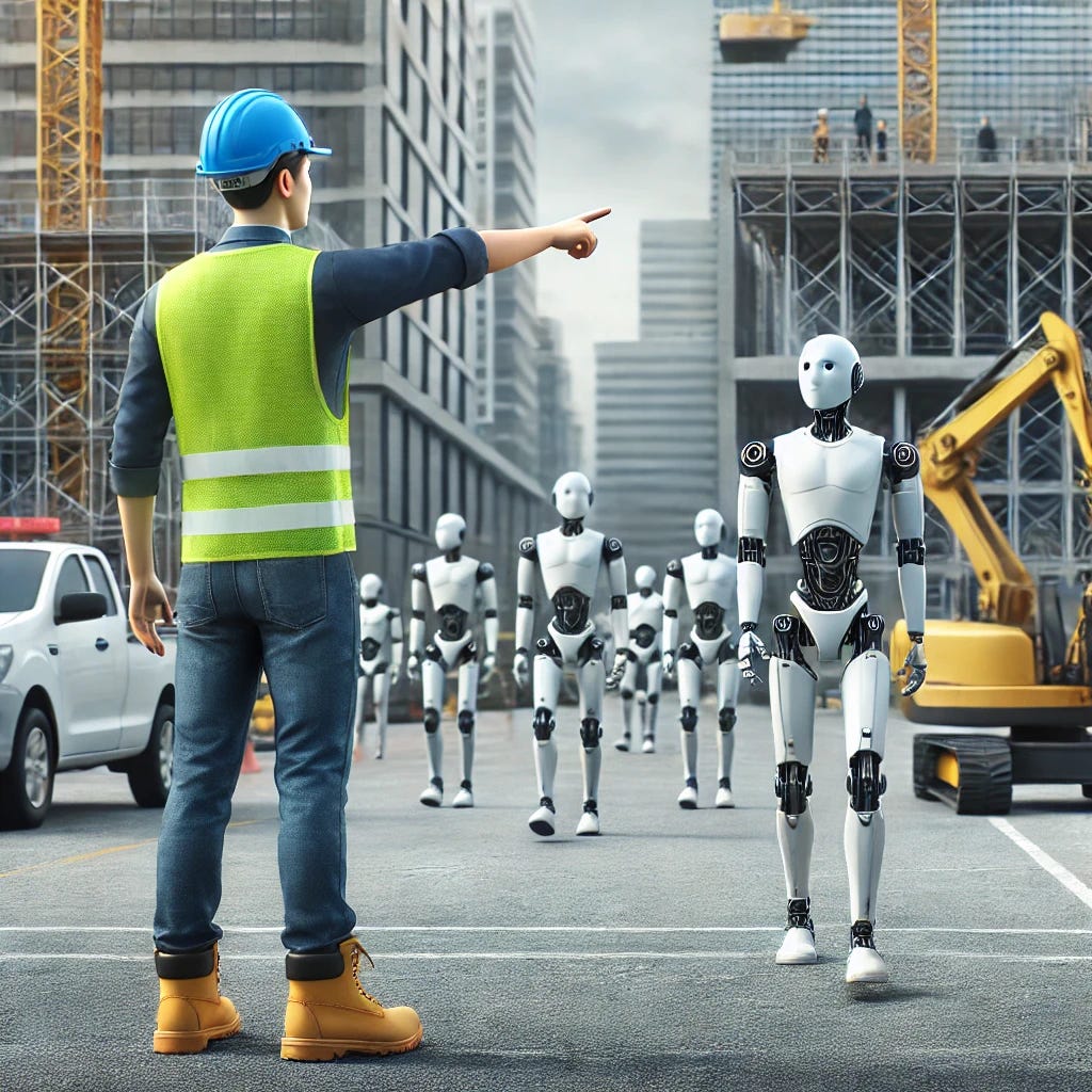 A warehouse operator issues a command to a humanoid robot: